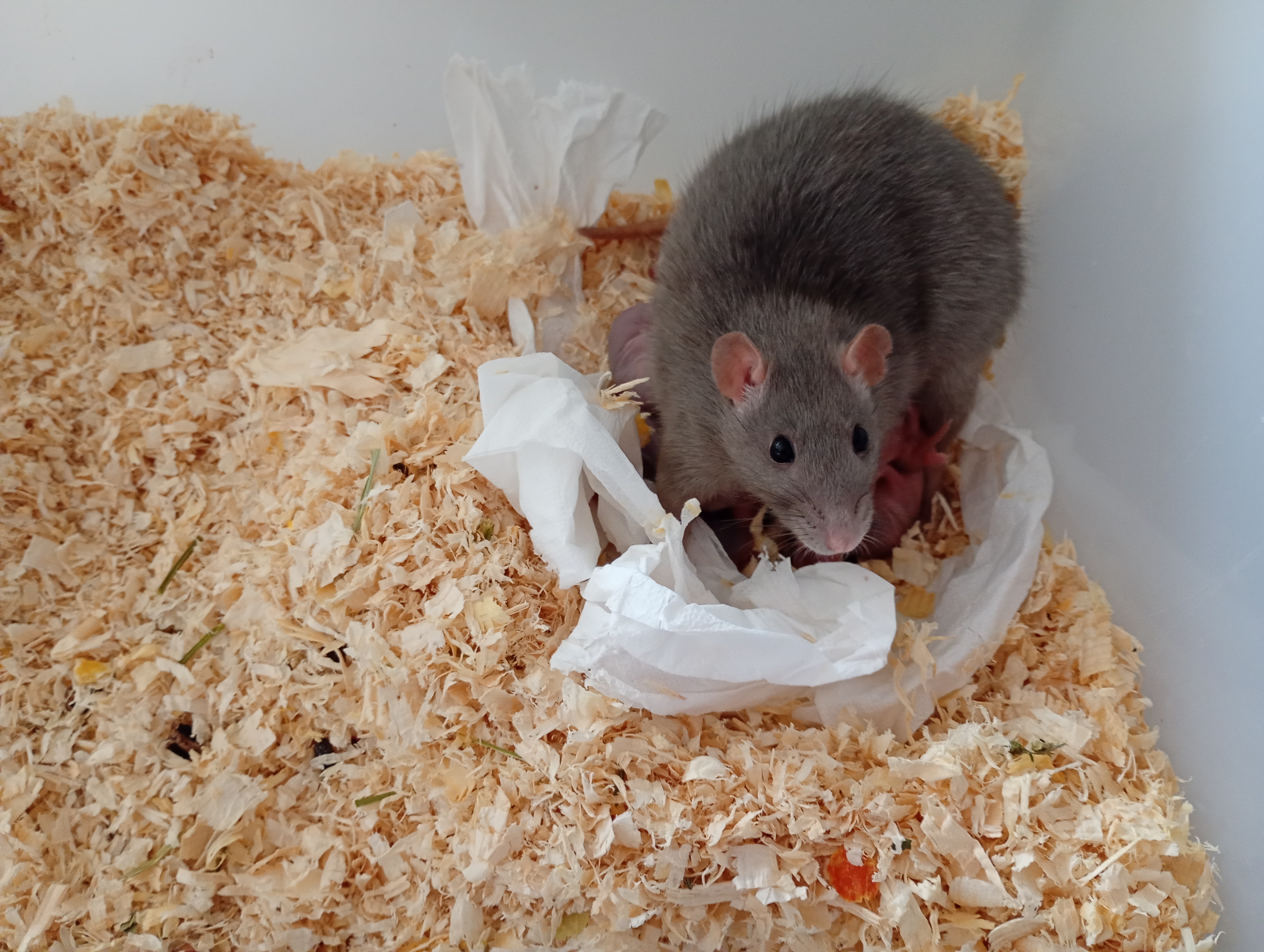 Het is vergelijkbaar met de (menselijke) situatie dat ik u (in persoon) bij een wildvreemd persoon voor de deur afzet en de bewoners van het huis (en u) confronteer met het feit dat u vanaf dat moment een gezamenlijke huishouding gaat voeren...... Terecht reageert u hierop (vrijwel zeker) met bedenkingen. Zo is dat ook voor de ratten. Een 'op leeftijd gekomen rat' een 'maatje opdringen' is soms het laatste wat je met hele oude dieren moet willen, als ze aangeven dat ze 'daar niet meer aan toe zijn op hun oude dag'. Ratten-opa's en oma's willen soms alleen nog maar hun eigen vertrouwde omgeving en hun baas?